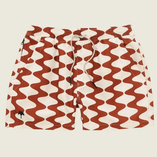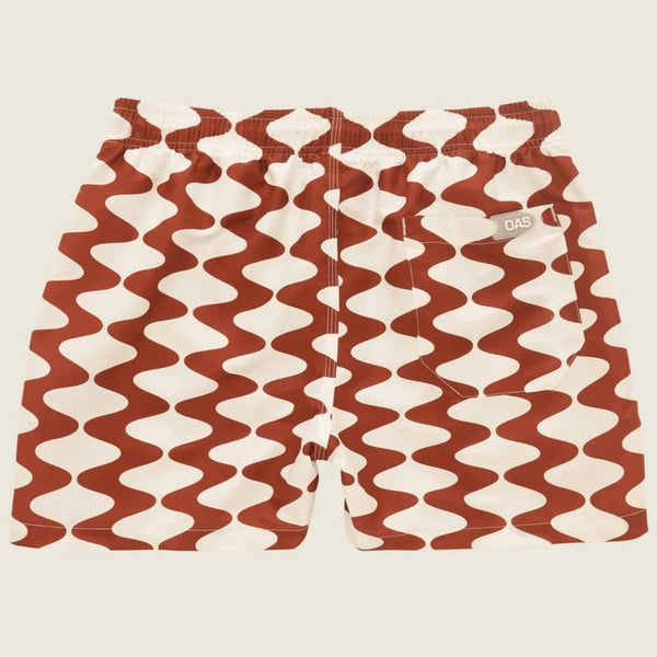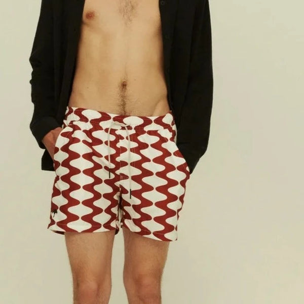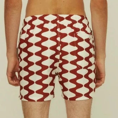 The Big Lauda Swim Shorts in Red & Cream by OAS Signature Classic Fit: Tailored swim shorts  Inspired by the groovy atmosphere of Rio De Janeiro Two front pockets, one back pocket and...