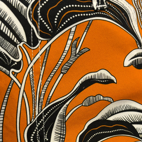 The Black Lily Print Stretch Short in Orange from Oxford Lads: Crafted from a quality cotton and spandex durable fabric providing superior comfort and an exceptional fit 7" inseam Single button...