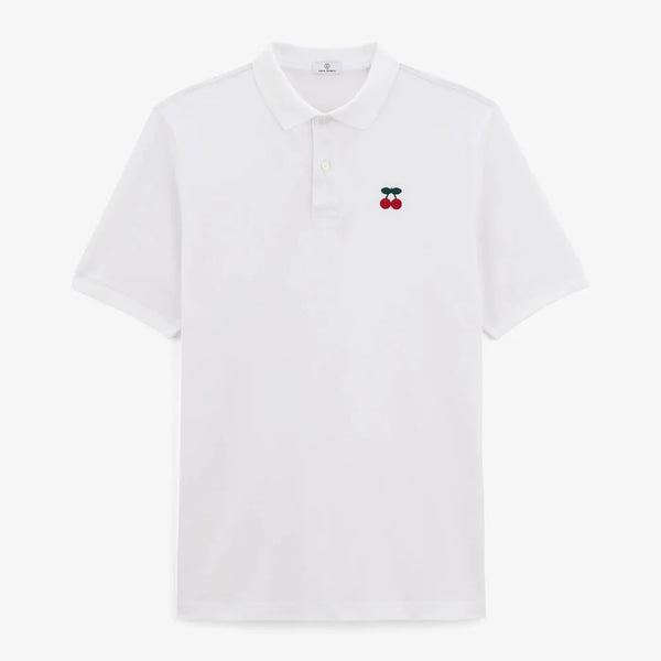 The Short Sleeve "Cherry" Embroidered Polo in White from Serge Blanco: Crafted from 190 g cotton pique knit, ensuring softness & breathability 2-button placket Ribbed collar and cuffs 100% cotton PRC1131A-110020-001-WHT-SS25-SB...