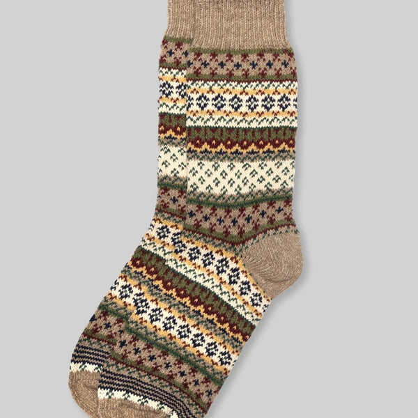 The Festive & Cozy Traditional Fair Isle Cotton Sock in Woodland from American Trench: Crafted from recycled cotton Specialized technique for creating multicolored knitting using more than one color is the...