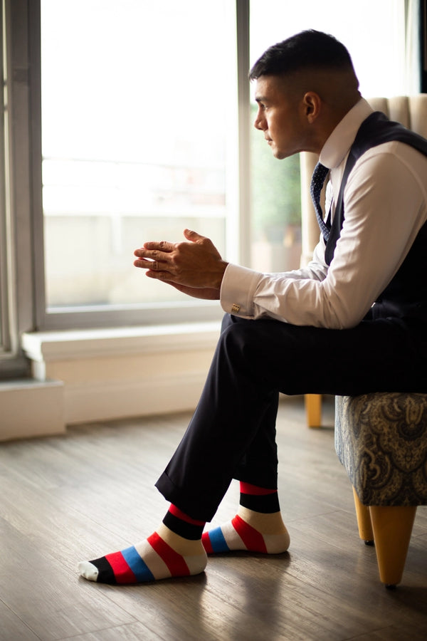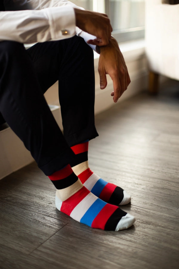 The Crew Sock in Brooklyn Bridge Style by Cooper & Jin: Reinforced toe & heel Ribbed top Stretch cotton blend optimizes comfort & durability 65% Cotton/20% nylon/13% polyester/2% spandex CS-BB...