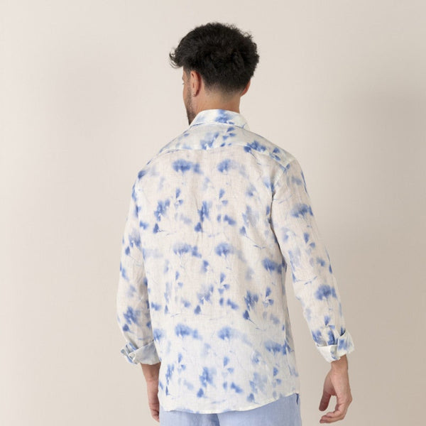Floral Print Linen Cala Shirt L/S: White