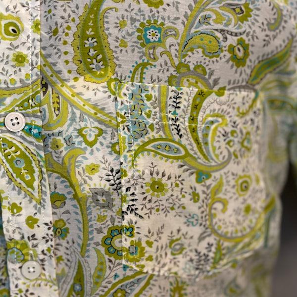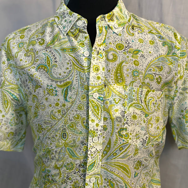 The Short Sleeve Silk & Cotton Green Floral Vine Print Shirt in Eggshell from Oxford Lads: Crafted from luxe silk & cotton printed fabrics resembling true works of art Front button...