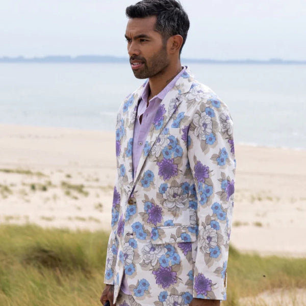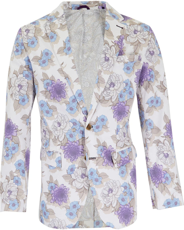 The Printed Flower Bed Hadrian Blazer in Ivory from Lords of Harlech: