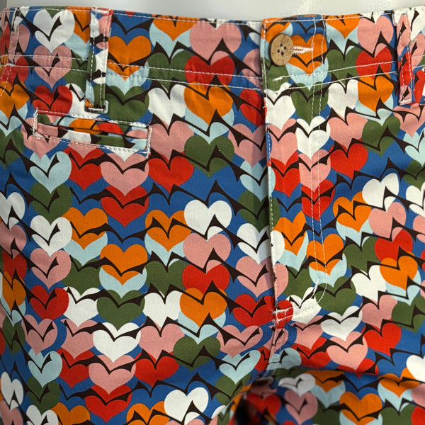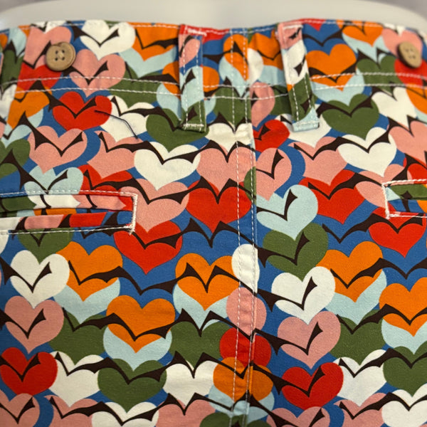 The Multi-Color Hearts Stretch Short in Blue from Oxford Lads: Crafted from a quality cotton and spandex durable fabric providing superior comfort and an exceptional fit 7" inseam Single button...