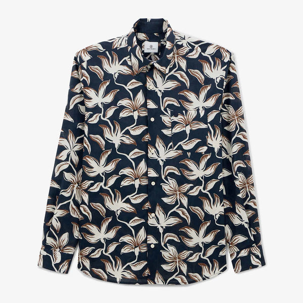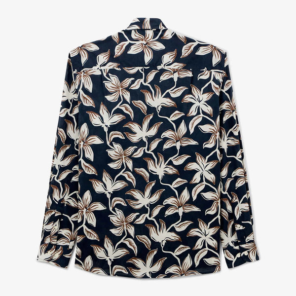Hibiscus Print Charles Shirt L/S: Dark Navy