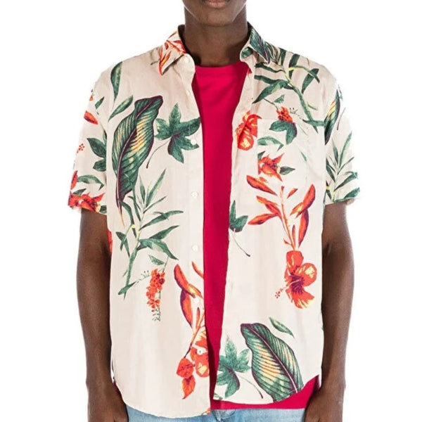 The Short Sleeve Hibiscus Print Shirt in Ecru from Serge Blanco: Bold hibiscus flower & leaf print Removable collar stays Rounded chest pocket with embroidered tonal logo White buttons with...