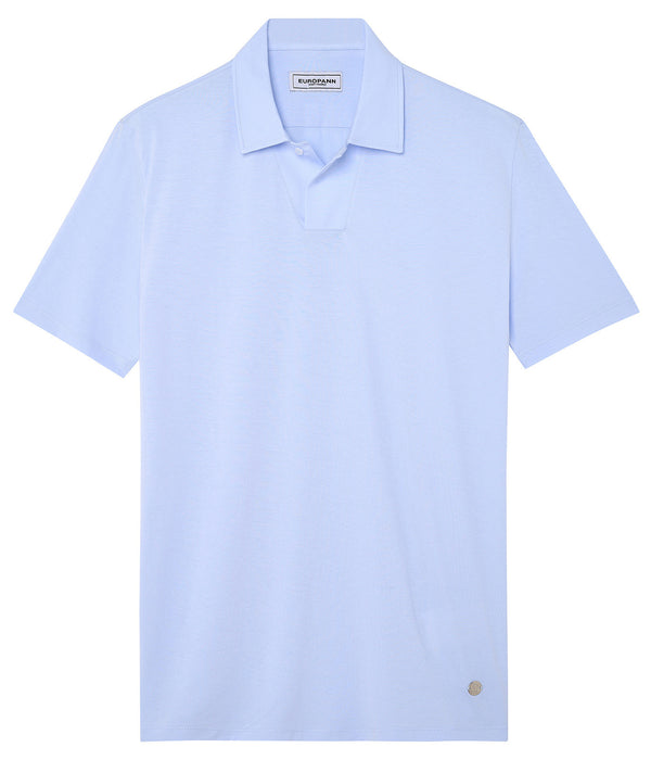 The Short Sleeve Soft Collar Hills Polo in Sky Blue from Europann: Crafted from a soft & comfortable cotton jersey fabric Soft collar with a 1-button placket Pearl button Engraved...