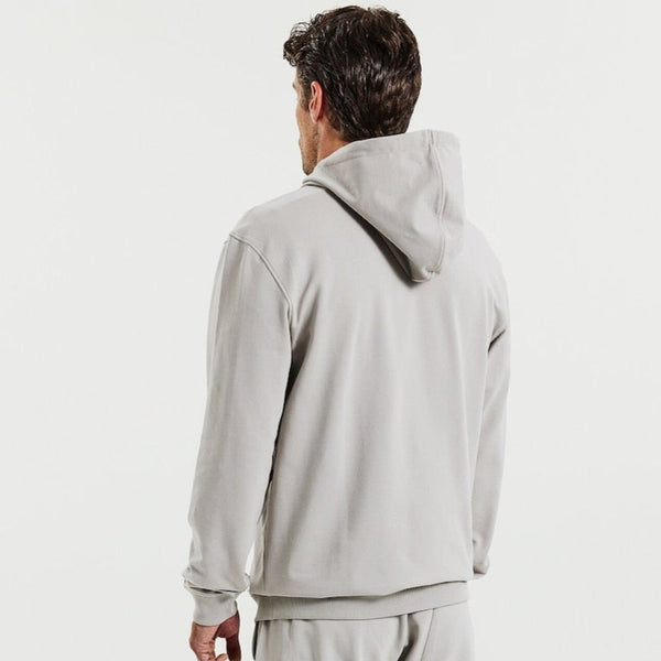 The Long Sleeve Hoodie in Greige from Bread & Boxers: Minimalist hoodie in a super soft organic cotton fabric Tailored fit  Features ribbed cuffs and hem Adjustable hood with cotton drawstrings...