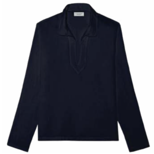 The Long Sleeve Collared Pullover Linen Mariniere Java Shirt in Navy Blue from Europann: 100% linen 25241LIN-NVY-SS25-EUROP