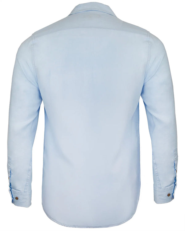 The Long Sleeve Solid Linen Lionel Shirt in Sky Blue from Lords of Harlech: Crafted from a luxe, premium linen fabric Open, spread collar Short sleeve 100% linen LIONEL-SKY-SS25-LOH