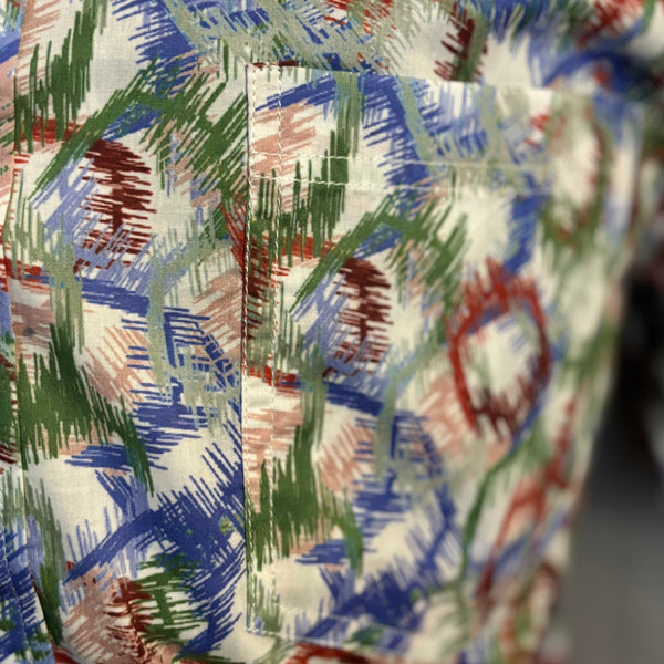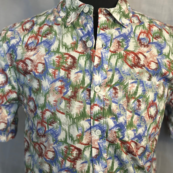 The Short Sleeve Brush Stroke Rings Cotton Shirt in White from Missing Pieces: Crafted from cotton printed fabrics resembling true works of art Front button closure with Button-down collar Modern...
