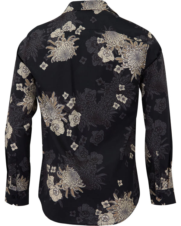 The Long Sleeve Mumms Dream Norman Shirt in Black from Lords of Harlech: Crafted from a 70's poplin cotton fabric Modified spread collar Modern fit Signature mechanical stretch Rounded shirt...