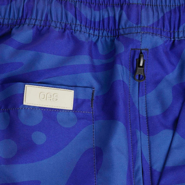 The Rapture Print Swim Trunk in Royal Blue by OAS Crafted from a brushed fast drying shell fabric Decorated with a hypnotic motif in electric blue shades Tailored for a relaxed,...