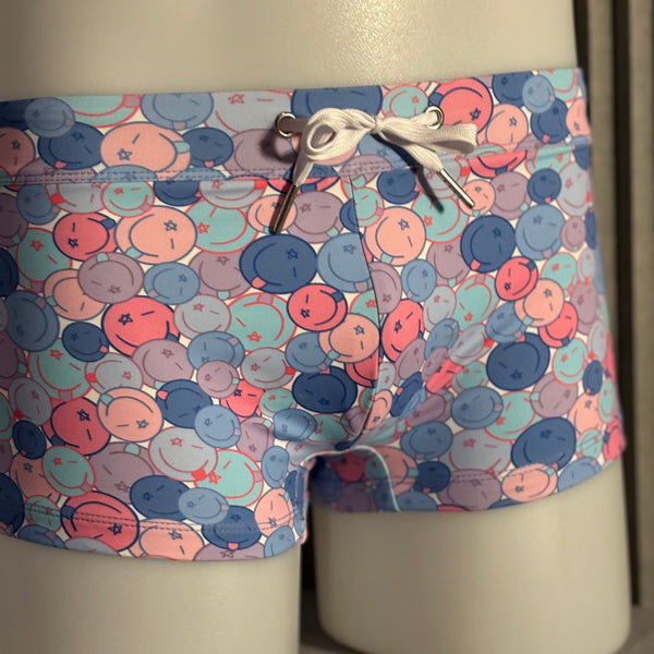The Smile & Wink Knit Swim Trunk in Blue from Kenneth Scott: Sporty white exterior drawstring tie with metal aglets Integrated built-in pouch for maximum comfort, coverage & support Seamless back construction...