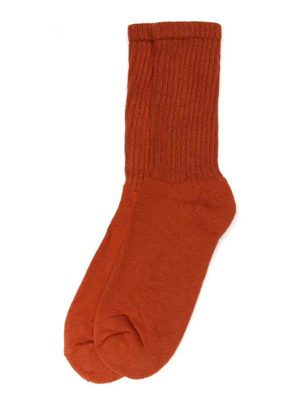 The Solids Sport Crew Sock in Rust from American Trench: Compression band on the foot provides performance, comfort & arch support Crew length tall enough for any boot Knit in...