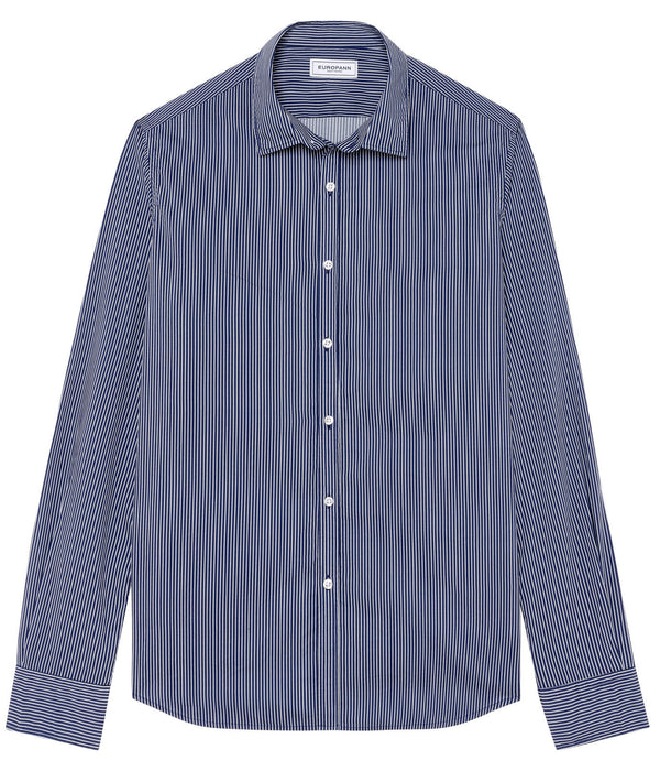 The Long Sleeve Engineer Stripe Milan Shirt in Navy Blue from Europann: