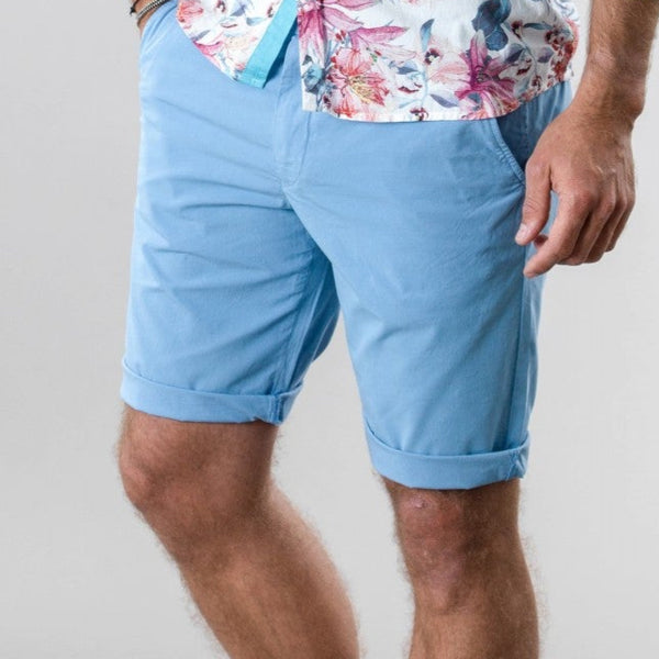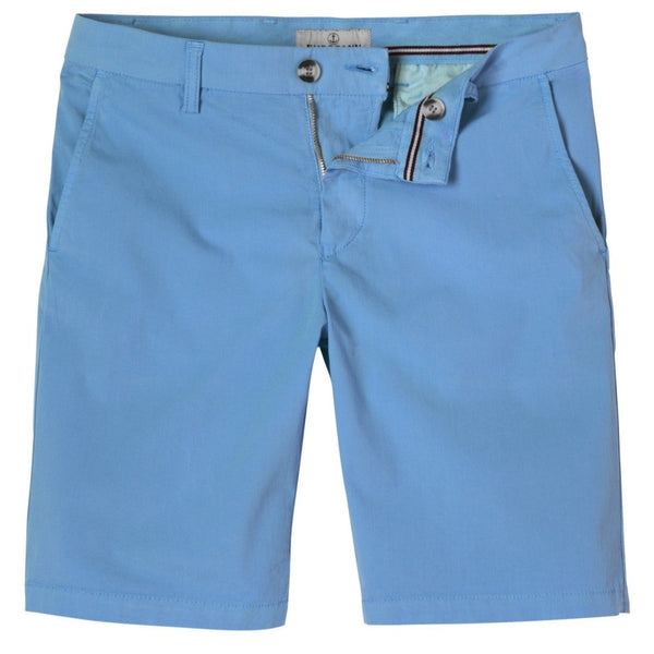 The Stretch Slim Fit Texas Short in Ocean Blue from Europann: Crafted from a lightweight stretch cotton chino fabric for comfort & flexibility Slim fit design 2-front side slant pockets 2-buttoned...
