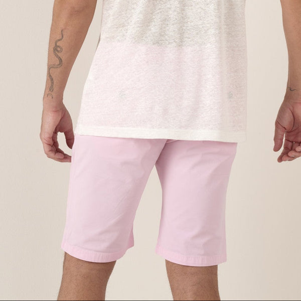 The Stretch Slim Fit Texas Bermuda Short in Pink from Europann: Crafted from a lightweight stretch cotton chino fabric for comfort & flexibility Slim fit design 2-front side slant pockets 2-buttoned...