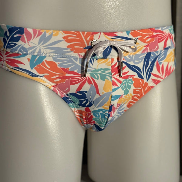 Tropical Leaves Swim Brief: White