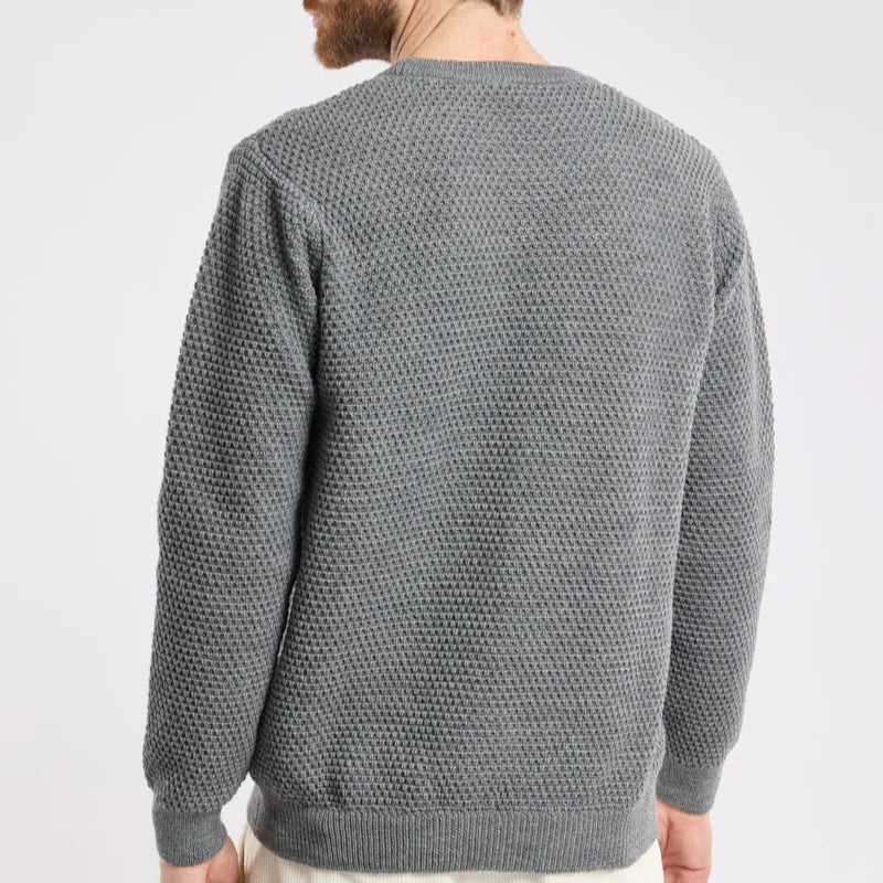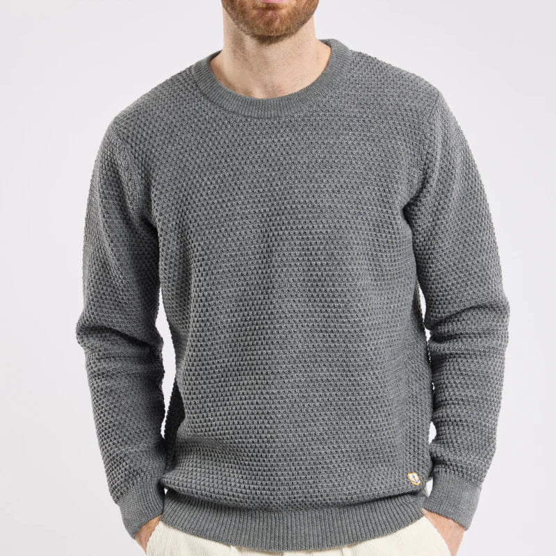 The Long Sleeve Waffle Stitch Wool Sweater in Misty Grey from Armor Lux: