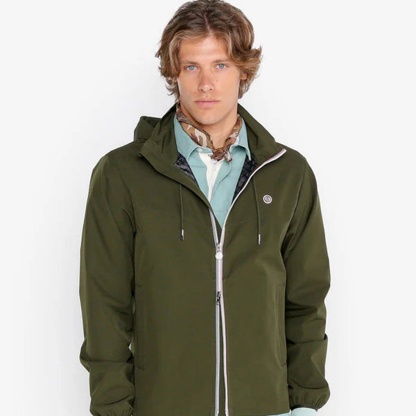 The Waterproof Storm Jacket in Teak from Serge Blanco: Crafted from a waterproof and lightweight fabric that provides protection from the elements while remaining comfortable & breathable Hidden hood that tucks...
